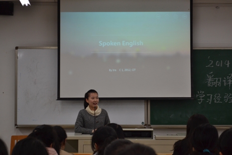 这次大会有分享环节和互动环节两个部分。在分享环节中,白斯航学姐详细地向我们传授了英语口语以及公开演说的技巧;刘畅学姐亦认真地从专业学习、校内外活动、大学心态三个方面将她的想法娓娓道来;而程霄宇学长则从什么是大学、什么是学习的提问中拉开了精彩演讲的帷幕。之后,在众人的期待中,大会进入了互动环节。同学们提出的关于第一次陪同翻译的经验等问题,学长学姐们均热情解答。整个大会严谨而又不失活力,令人回味。