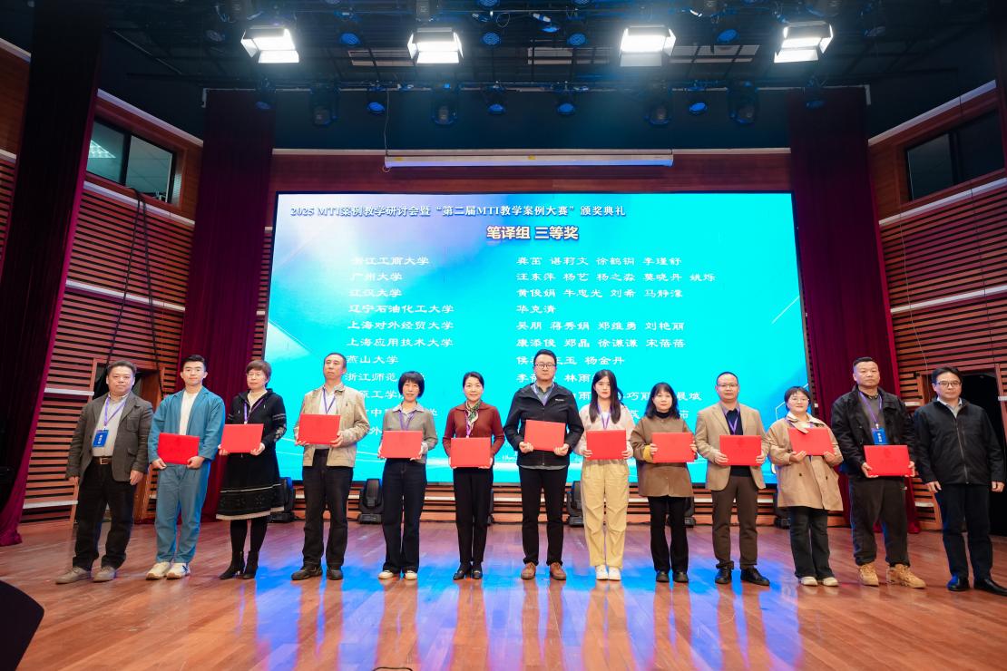 11月1日,由全国翻译专业学位教育指导委员会指导,上海市科技翻译学会主办的“2025 MTI案例教学研讨会暨第二届MTI教学案例大赛颁奖典礼”在上海应用技术大学成功举办。太阳成集团tyc33455但凝洁、谭万文老师在本次大赛中表现优异,荣获三等奖。