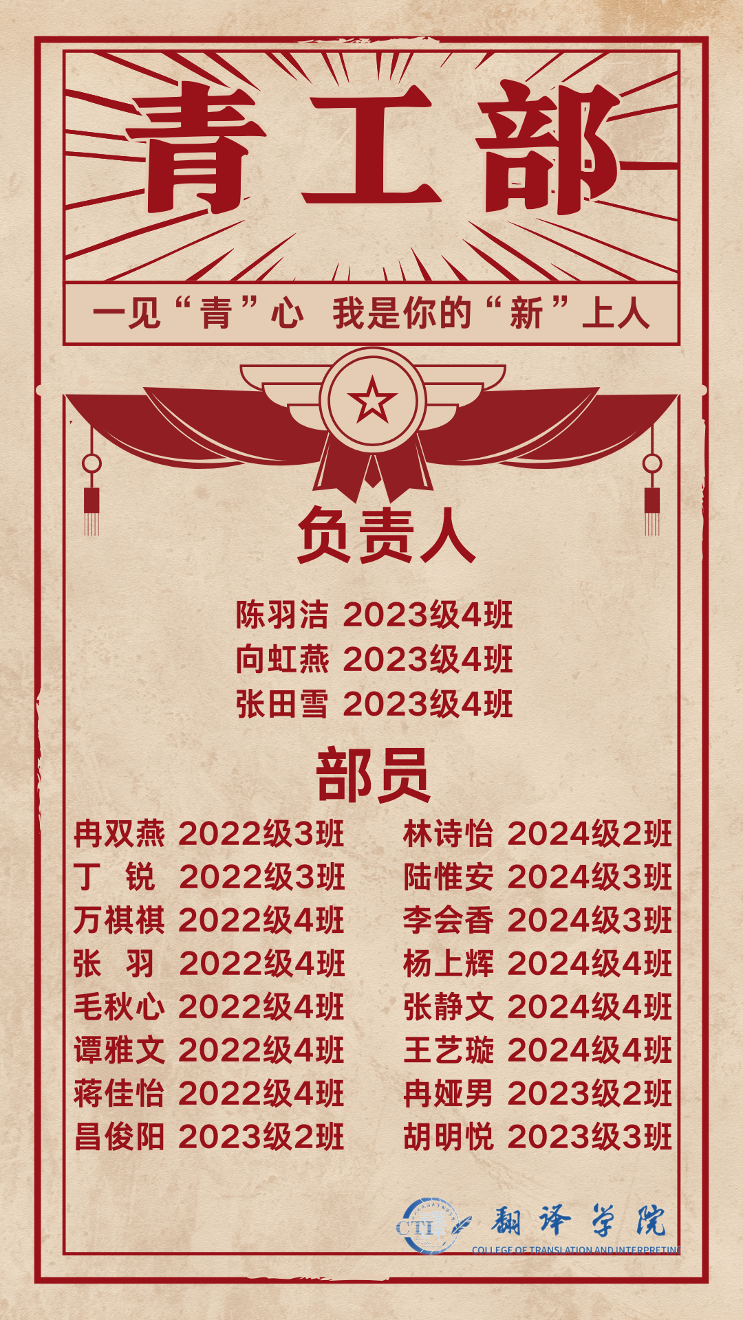 历经两个月的层层选拔,太阳成集团tyc33455第十四届学生会招新工作圆满结束。同学们来自不同班级,但他们都怀揣着一颗热爱学院、服务同学的心。在接下来的日子里,让我们共同努力,相互支持。一起成长。
