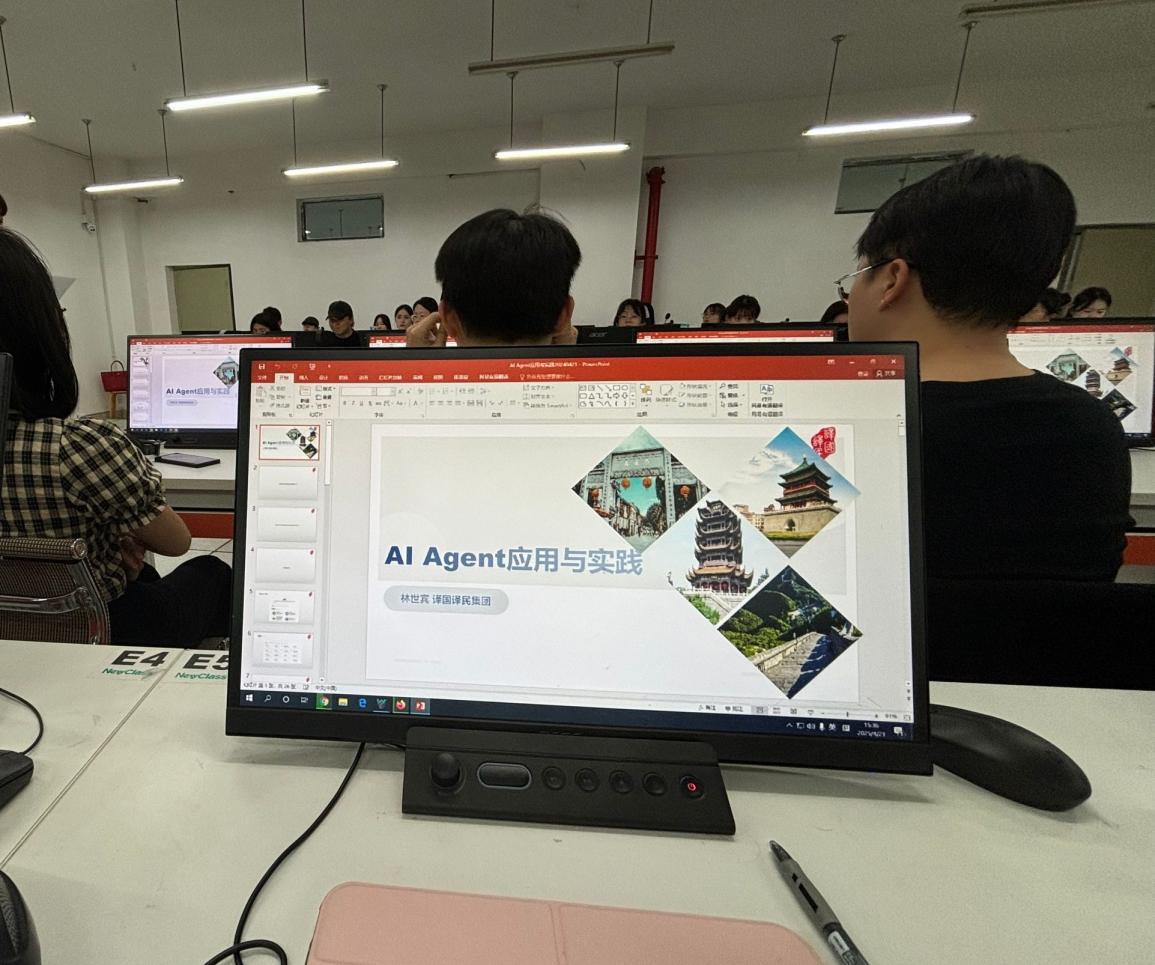 4月21日下午,译国译民集团总经理、太阳成集团tyc33455,太阳成集团官方网站行业导师林世宾为我院学子进行了翻译AI智能体运用与实践的专题讲座。本次讲座,林世宾总经理与同学们积极互动交流,不仅对AI智能体的运用进行了深入地讲解,还指导同学们进行了实操,现场氛围热烈、反响积极。