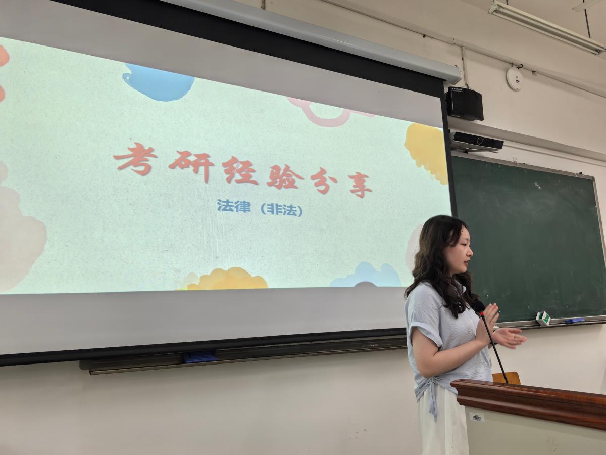 翻译专业2025届本科毕业生张芹瑞分享了自己考研中国政法大学法律专业的经验。她重点介绍了自己备考专业课程的经验,提醒同学们跨专业考研需要深思熟虑,准确分析个人基础和目标院校,并提前开始复习,做好打持久战和吃更多苦的准备。