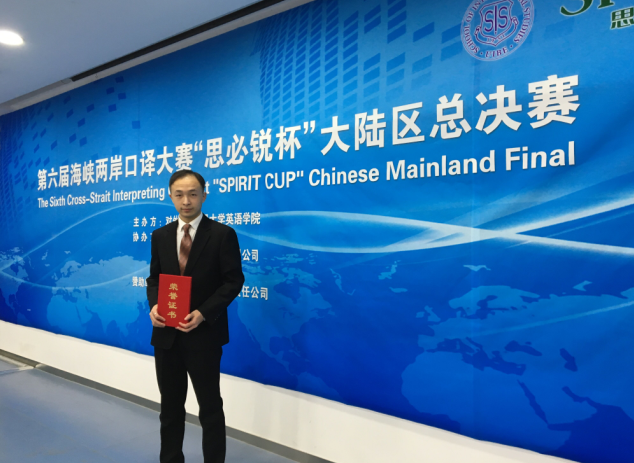 大赛分为“主旨口译”、“对话口译”与“会议口译”三个环节,涉及“职业幸福度”、“骑行安全法”、“美国信用卡技术改革”“丝绸之路电影节”、“中国文化发展得失”等颇具挑战性的话题。本次大赛高手如云,来自全国各大区的一二等奖获得者在本次决赛中必须经过三轮的淘汰赛才能决出胜负。第一轮“主旨口译”环节的竞争异常激烈,参赛选手不能记笔记,全程靠短期记忆进行口译。程霄宇同学在第一环节中表现突出,顺利晋级第二环节“对话口译”;第二环节的“对话口译”由两位老师现场进行对话,比赛选手一一上台进行交替传译。当两位老师谈到“霍比特人”、“西雅图无眠夜”、“指环王”等电影的时候,台下的观众为台上的选手捏了一把汗,担心这些优秀的学霸平时很少看电影而无法进行恰当的翻译,尤其是像“西雅图无眠夜”这种90后不熟悉的电影。我校选手程霄宇没有让观众和评委失望,流利准确地传达了两位对话老师的意思,赢得观众的一片掌声,并最终晋级第三个环节“会议口译”。第三环节的竞争更趋白热化。虽然进入这一环节的选手已经是大奖在握,但他们丝毫没有松懈,始终保持清醒的头脑,表现出了过硬的专业能力与双语素养,赢得台下阵阵掌声。最终,我校选手程霄宇以微弱分数之差获得三等奖。他将和其他一二等奖选手一道赴台参加明年4月的海峡两岸总决赛,与来自台湾、香港和澳台以及海外的参赛选手同台竞技,希望程霄宇同学在最终的比赛中取得更好的成绩。