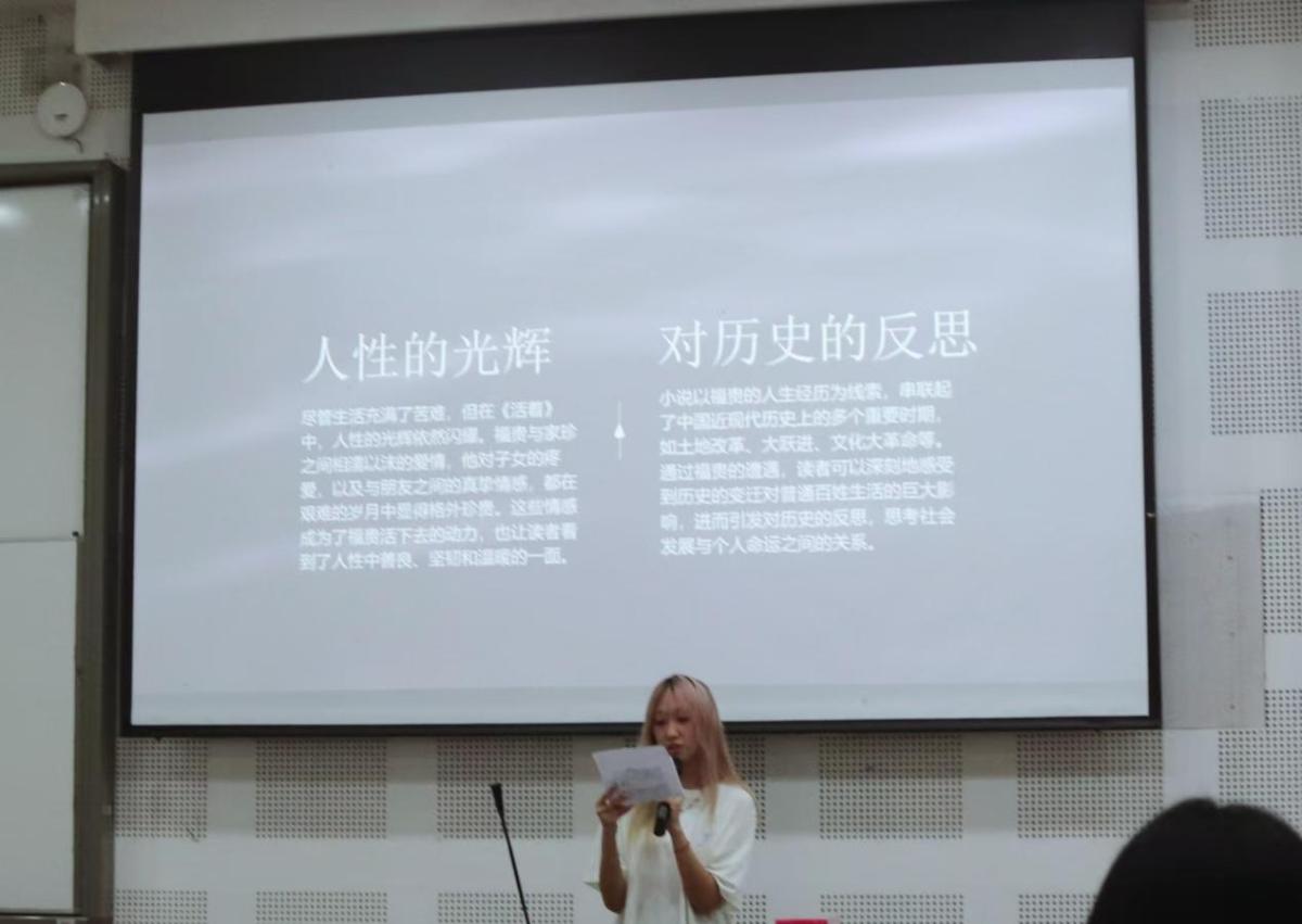 2025年6月6日下午15:00,太阳成集团tyc33455首届阅读传播力大赛在西区歌乐楼C1-2举行。学院各年级共8个小组代表,以讲解、传播、朗诵等形式,分享了《活着》《傲慢与偏见》《红岩》《卡拉马佐夫兄弟》《红星照耀中国》《艾青诗选》《显微镜下的成都》等经典书目,为大家带来了一次新颖、丰富的阅读体验。