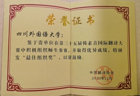 我院学子在第三届“和平杯”中国法律外交翻译大赛、第十二届全国口译大赛(英语)、2023年第三届《英语世界》杯全国大学生翻译大赛、2023“外研社.国才杯”“理解当代中国”全国大学生外语能力大赛、第五届ETTBL全国商务英语翻译大赛、第十八届研究生英语综合技能大赛等各类专业学科竞赛中获奖200余人次。其中MTI2022级同学牛可心在2023“外研社·国才杯”“理解当代中国”全国大学生外语能力大赛国赛中获得银奖。学院获得第三十五届韩素音国际翻译大赛最佳组织奖。在第八届西北地区高校模拟外交谈判大赛决赛中曾俊琦同学获最佳记者称号,刘雪颖同学获最佳谈判官称号。