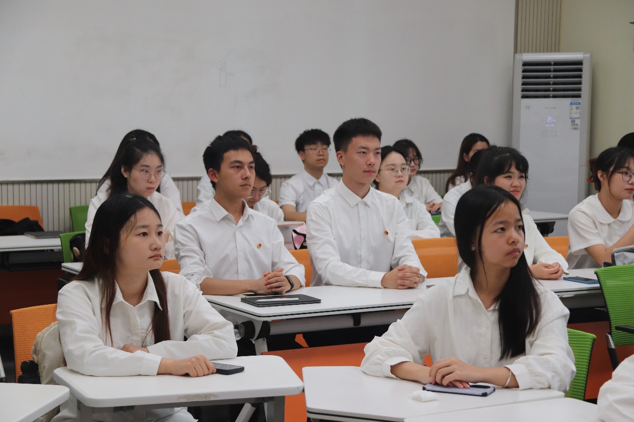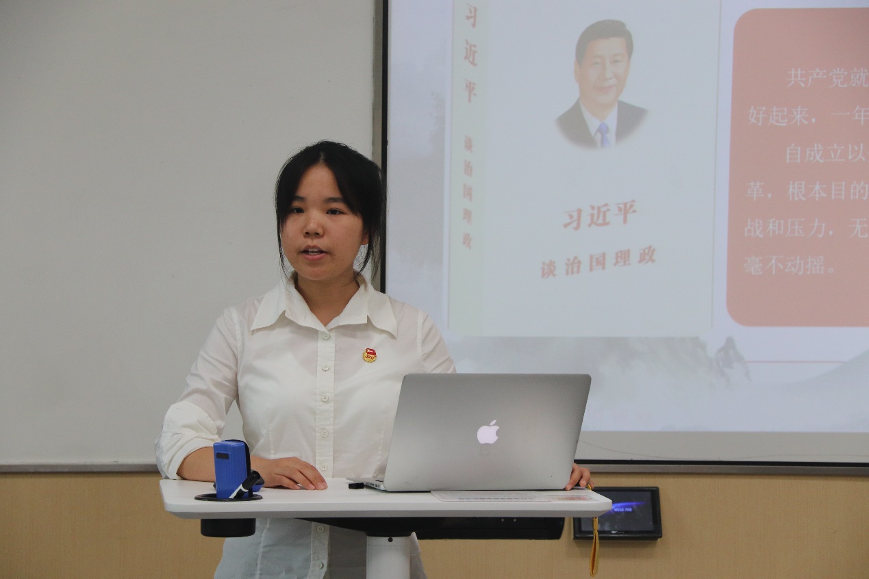 本科2023级1班的黎晶晶同学分享了自己在阅读《习近平谈治国理政》后的心得体会,向大家展示了党在乡村振兴和脱贫攻坚中做出的突出贡献与取得的显著成就。她说道:“我们眼中有光,我们心中有梦,我们将带着无比的坚定奔向另一个青春百年。”