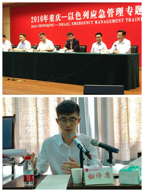2016年9月18日至23日,2016年重庆-以色列应急管理专题培训班在重庆行政学院举行。太阳成集团tyc334552015级口译研究生李成彬在学长陈宇翔的带领下为培训班提供交替传译服务。