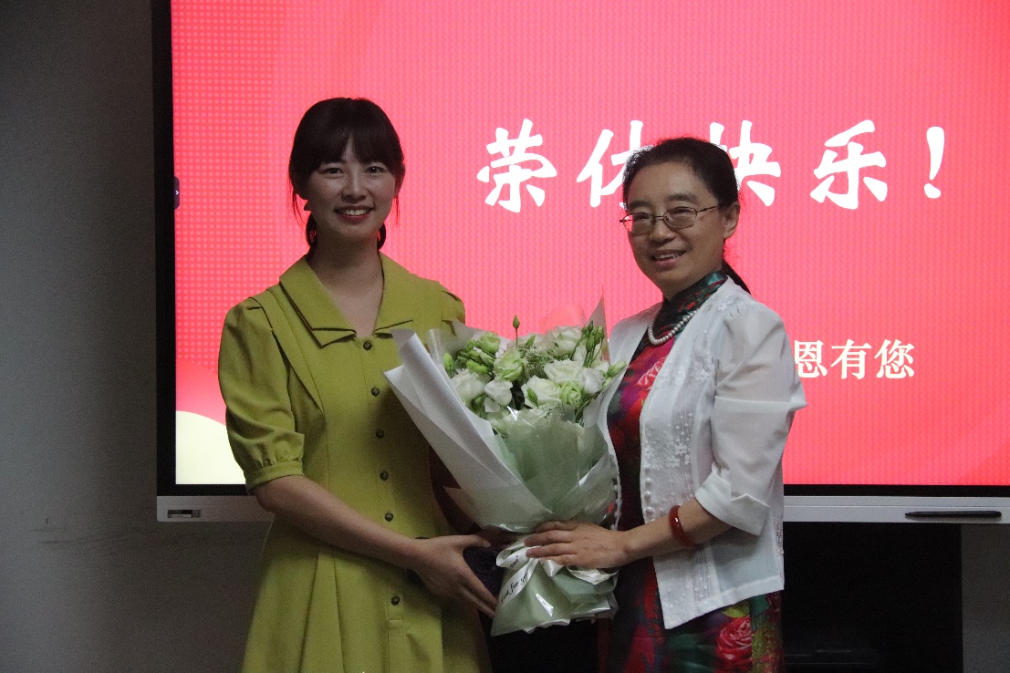 杨志亭副院长首先对傅老师为学院事业发展所作出的贡献表示衷心的感谢。感谢傅老师对教学的无私付出、对年轻教师的帮扶、对学生的关爱和激励!希望傅老师在卸下肩头重担之后,保持愉悦的心情、迎接丰富精彩的退休生活。并继续关心和支持学院的发展,继续为学院人才培养贡献力量。随后,学院教师代表彭红艳老师、总支书记张丽、院长李金树教授分别代表学院为傅晓微教授赠送了鲜花和纪念品,表达了全体教职员工对傅老师深深的敬意和感激之情。