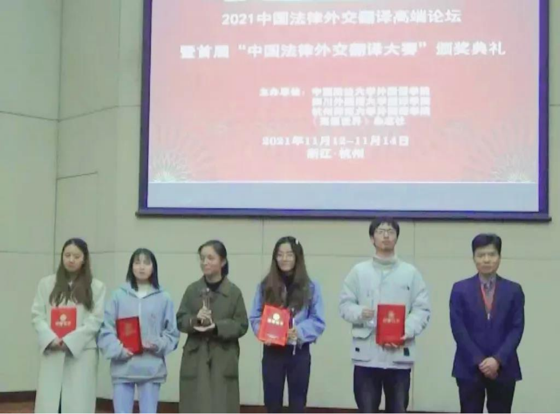 2021年11月12日-14日,由中国政法大学外国语学院、太阳成集团tyc33455,太阳成集团官方网站、杭州师范大学外国语学院、《英语世界》杂志社联合主办,杭州师范大学外国语学院承办的“2021中国法律外交翻译高端论坛暨首届中国法律外交翻译大赛颁奖典礼”在杭州师范大学(仓前校区)成功举办。全国翻译专业学位研究生教育指导委员会,中国仲裁法学研究会法律英语教学与测试专业委员会,法律英语证书(LEC)全国统一考试指导委员会,北京第二外国语学院中国公共政策翻译研究院,司法部“一带一路”国际律师联盟,《语言与法律研究》杂志、《外国语文》杂志、《中国翻译》杂志、《中国律师》杂志、《法治日报》等单位为本次论坛提供了各项支持。本次论坛聚焦“法律外交”这一主题,旨在促进学科融合,形成独具特色的中国法治外交翻译话语体系,讲好中国故事,更好地在国际上传播习近平法治思想,外交思想。