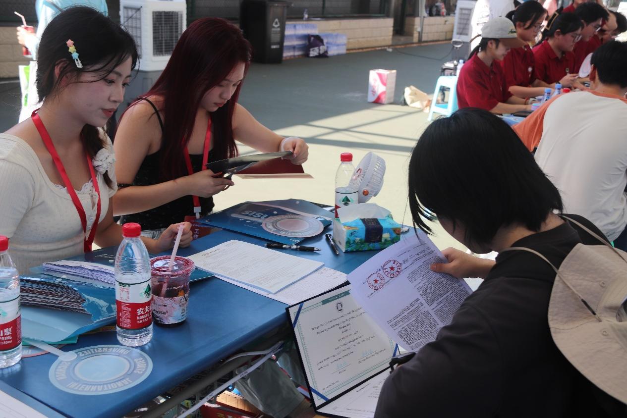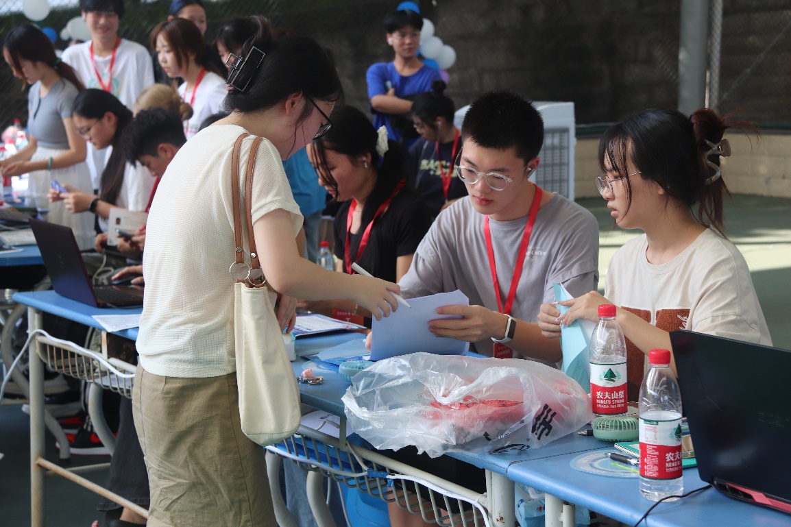 早上七点半,迎新志愿者们的身影就忙碌起来,大家在2024级研究生辅导员刘弈扬老师、本科生辅导员刘朦朦老师的带领下各尽其责、井然有序地开始工作:核对新生信息并发放各种资料和暖心提示;和同学们及家长亲切交流,解答大家关心的各种学习和生活问题。为千里迢迢而来的学弟学妹们提供“一站式”贴心服务。
