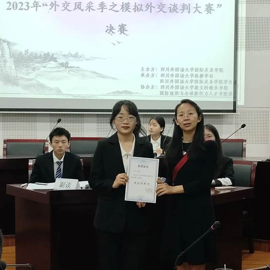 2022级1班刘雪颖同学在第八届西北地区高校模拟外交谈判大赛决赛获最佳谈判官称号。